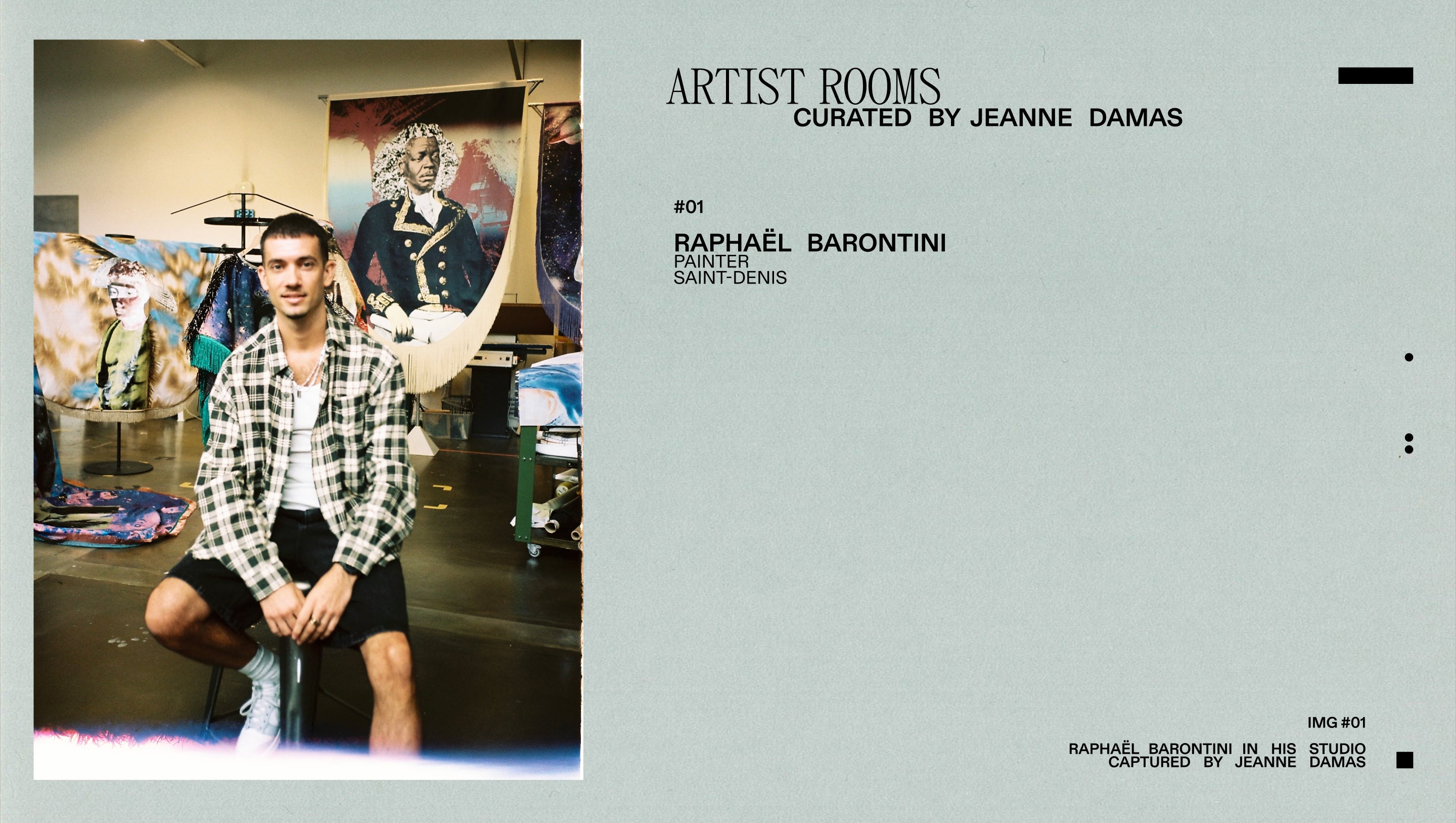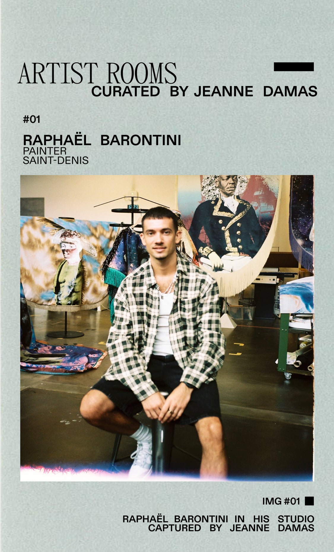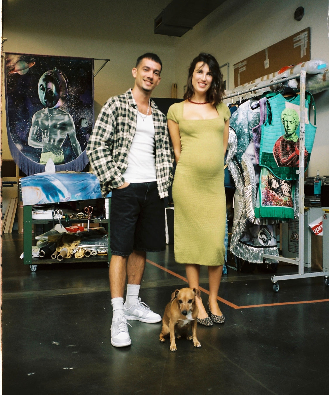 Raphaël Barontini with Jeanne Damas and Dobby in the artist's studio