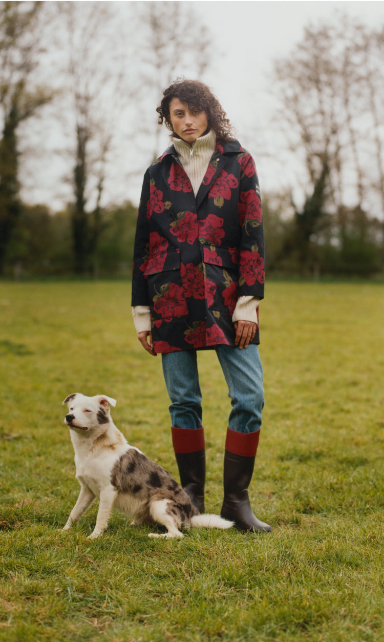 Vivi come Aigle, vestiti come Rouje: questa è la storia di una collaborazione francese appassionata. L'esperienza tecnica di Aigle nell'abbigliamento outdoor incontra lo stile parigino unico di Rouje, indissolubilmente legato alla sua fondatrice Jeanne Damas.