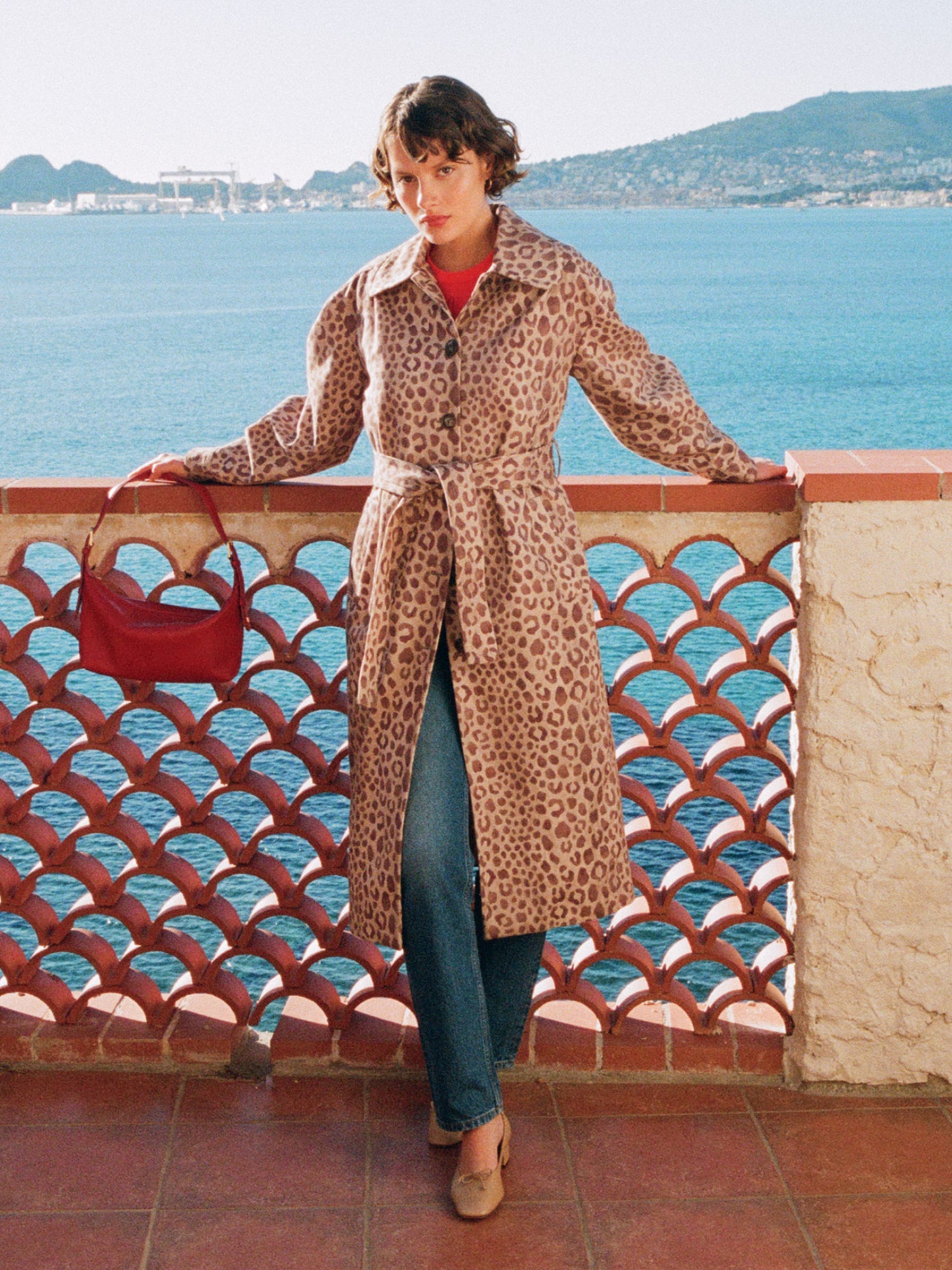 Les pièces iconiques font leur retour, allégées pour l’été. Le légendaire manteau Gérard se transforme en trench Savannah léopard ceinturé en coton léger, découvrez-le dans la collection Vestes & Manteaux.