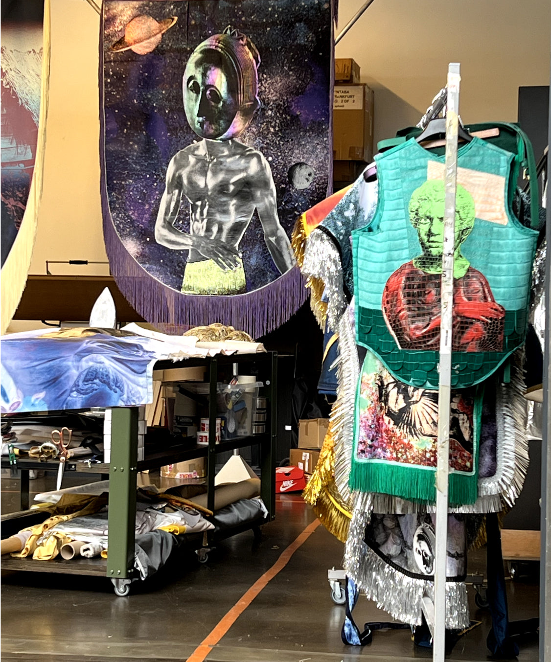 JD: Looking at all these materials, the textiles that you use, had me wondering about your relationship with fashion. You have also worked on parades. Is that something you are passionate about?